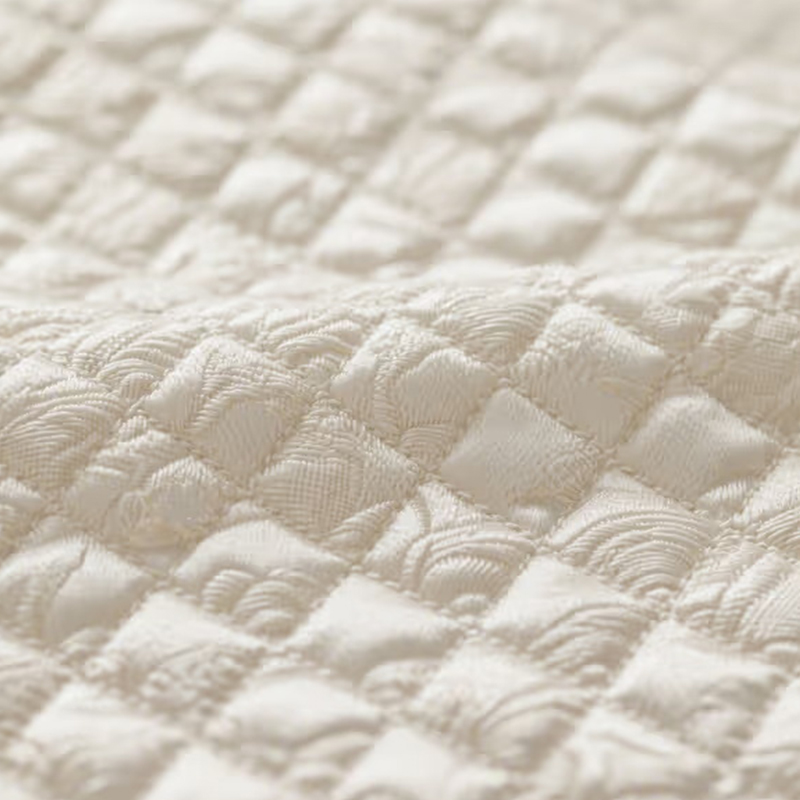 Imitace brokátové kostkované látky je špičková látka tkaná vynikající žakárovou technologií. Povrch představuje kostkovaný kostkovaný vzor s výrazným trojrozměrným a vrstveným dojmem. Díky jedinečnému žakárovému procesu tkanina nejen vykazuje efekt jemné textury, ale také dodává silný vizuální dopad, který představuje nenápadný a luxusní lesk. Tato tkanina je velmi vhodná pro použití v oblastech, jako jsou módní tašky a spojování oděvních dekorací. Jeho jemná textura a trojrozměrný efekt z něj činí ústřední bod v jakémkoli designu a je zvláště vhodný pro zvýšení celkové kvality a estetické hodnoty produktu. Trojrozměrný smysl látky zvyšuje její vizuální dynamiku, díky čemuž vyniká v designu tašek a oděvů a zdůrazňuje sofistikovanost a luxus špičkových produktů.