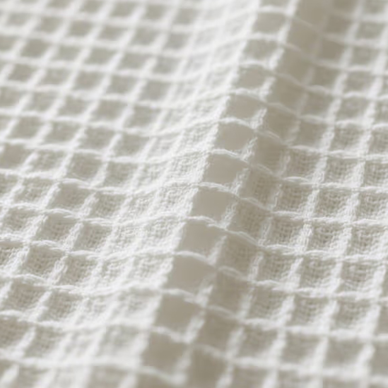 Waffle Knit Comfort Fabrics je tkanina tkaná s jedinečnou konkávně-konvexní texturou podobnou mřížce. Její povrch je tvarován jako vafle, která má výbornou prodyšnost a výbornou absorpci potu. Tato struktura umožňuje tkanině účinně absorbovat vlhkost a rychle odvádět pot, čímž udržuje pokožku suchou. Je vhodná pro nošení při vysoce intenzivním cvičení a dokáže rychle absorbovat a odpařovat pot, aby zajistila pohodlí při cvičení. Díky lehkosti a měkkosti tkaniny Waffle Knit je nošení v létě velmi pohodlné. Hojně se používá při výrobě letních košil a jiných oděvů pro udržení chladu těla v horkém počasí. Díky své dobré prodyšnosti a funkci odvodu potu je tato tkanina velmi vhodná pro výrobu sportovních ručníků, které pomáhají sportovcům rychle setřít pot a zůstat během cvičení v suchu.